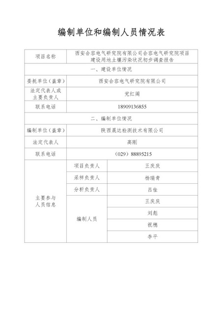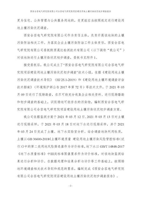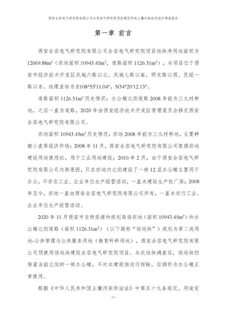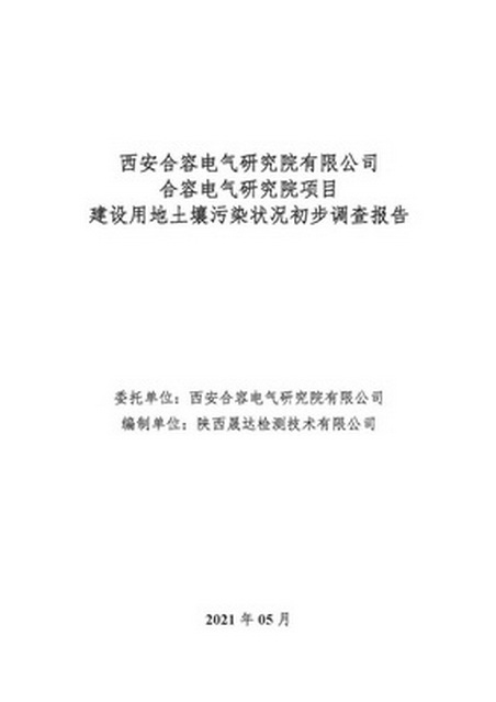 西安合容電氣研究院有限公司合容電氣研究院項(xiàng)目建設(shè)用地土壤污染狀況初步調(diào)查報(bào)告